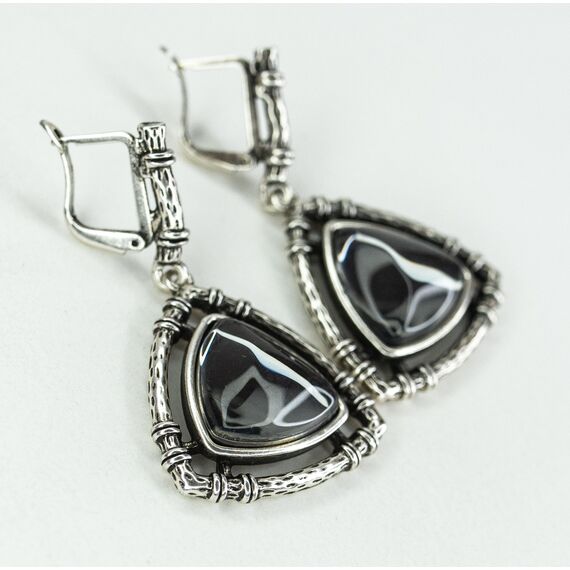 Серьги из гипоаллергенного ювелирного сплава серого цвета. Вставка- улексит (кошачий глаз) , цвет- серый. Высота серег-5,0см, ширина-2,5см. Английский замок (швенза-1,0см).