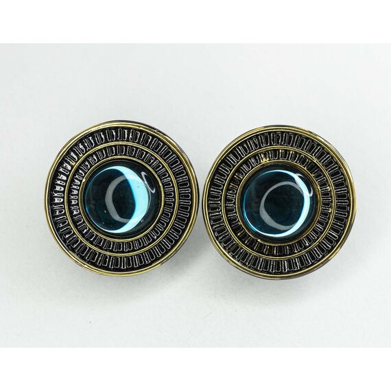 Серьги из гипоаллергенного ювелирного сплава желтого и черного цвета. Вставка- улексит (кошачий глаз) , цвет- лондон блю. Высота серег-3,0см, ширина-3,0см. Итальянский замок (швенза-1,2см и застежка- клипса).