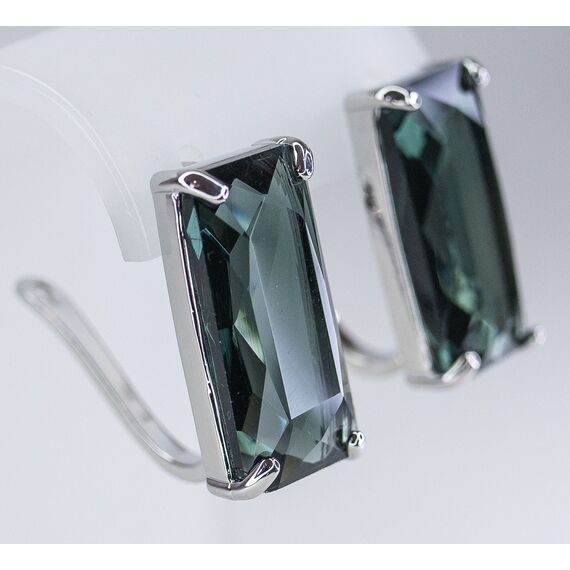 Серьги из гипоаллергенного ювелирного сплава, цвет-серый. Вставка- ювелирное стекло синего цвета. Высота серег-2,5см, ширина-1,0см. Застежка- английская ( швенза-1см).