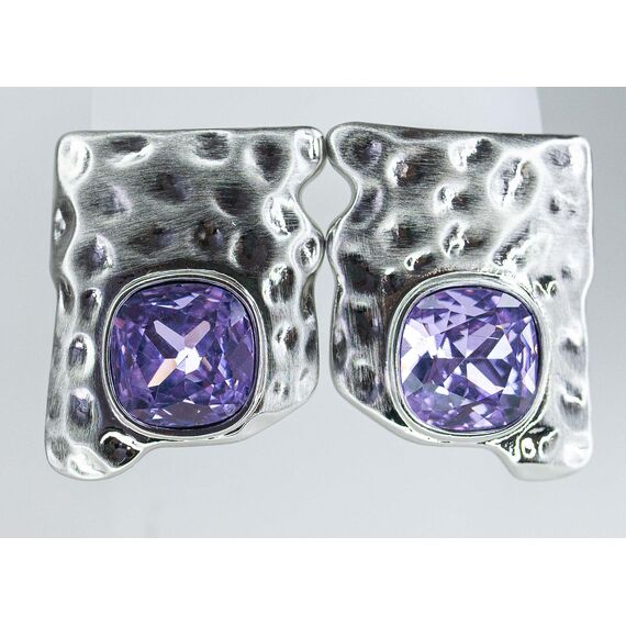 Серьги из гипоаллергенного ювелирного сплава серого цвета со вставкой из кварца (d-1,0см) сиреневого цвета. Высота серег--3,0см, ширина-2,0см, застежка- итальянская (швенза-1,2см и замок- клипса).