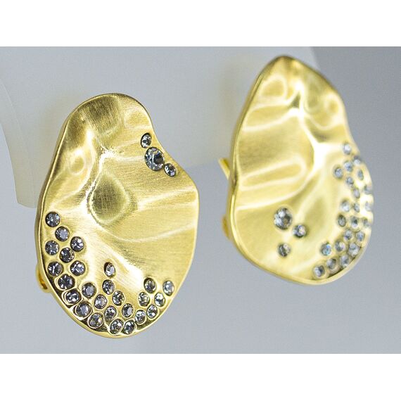 Серьги из гипоаллергенного ювелирного сплава желтого цвета. Вставка- ювелирное стекло белого цвета. Высота серег- 2,5см, ширина- 2,0см. Итальянский замок (швенза-1,2см и застежка- клипса).