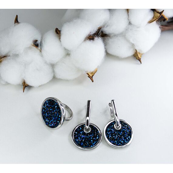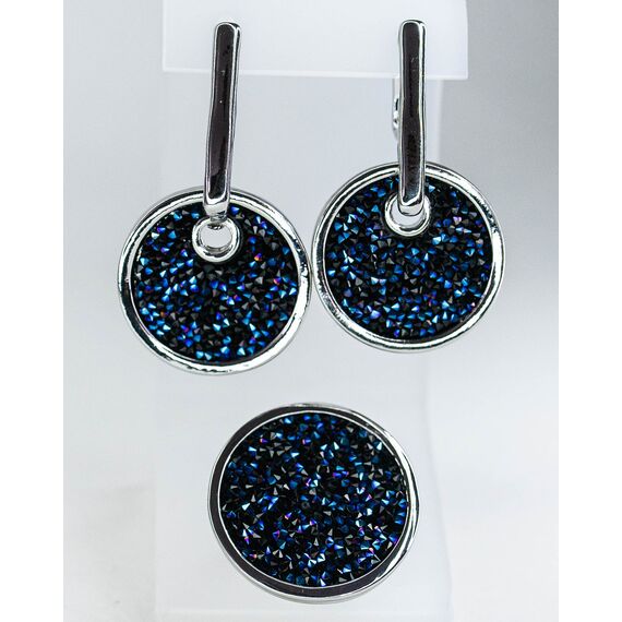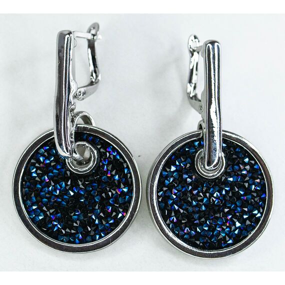 Серьги из гипоаллергенного ювелирного сплава серого цвета. Вставка- кристаллы, цвет- синий. Высота серег-4,0см, ширина-3,0см. Итальянский замок (швенза-1,2см и застежка- клипса).