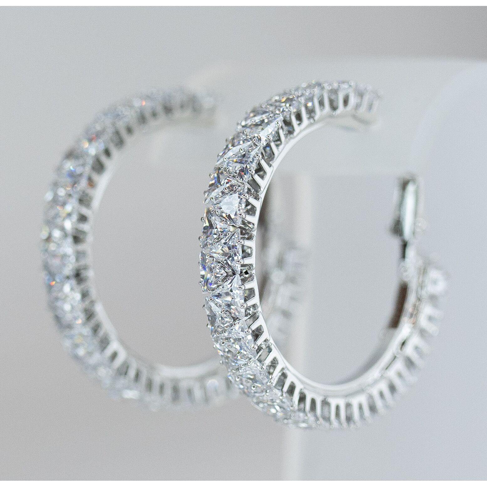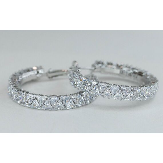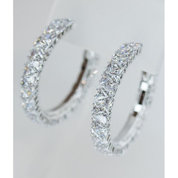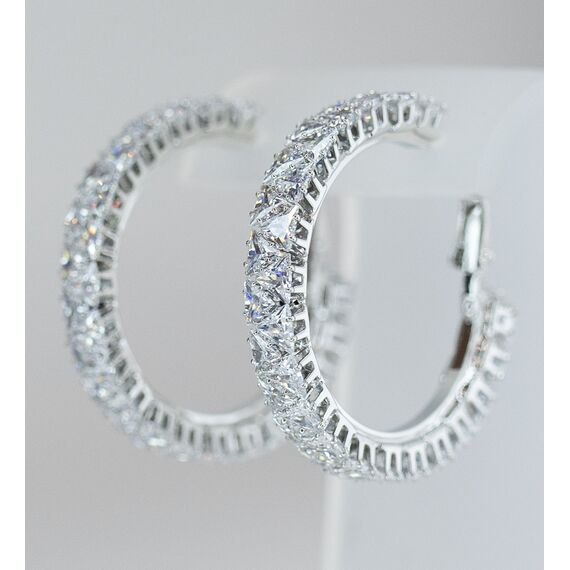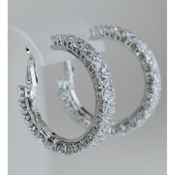 Серьги-конго из гипоаллергенного ювелирного сплава серого цвета. Вставка- циркон, цвет- белый. Диаметр серег- 4,0см. Застежка- итальянская ( швенза-1,2см и клипса).