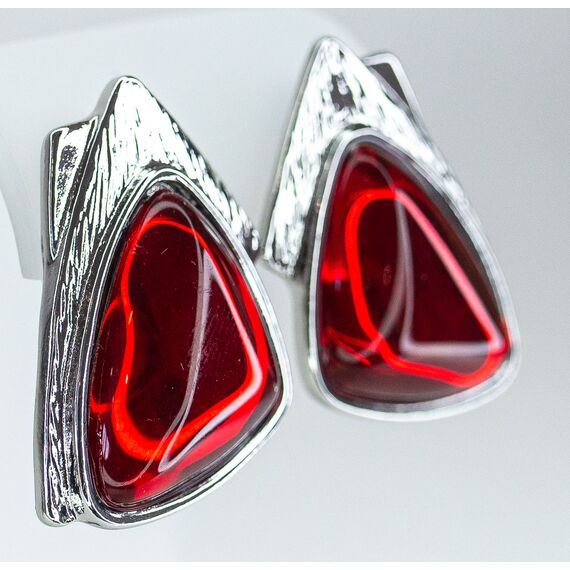Серьги из гипоаллергенного ювелирного сплава серого цвета. Вставка- улексит (кошачий глаз) красного цвета. Высота серег-3,0см, ширина-2,5см. Итальянский замок (швенза-1,2см и застежка- клипса).