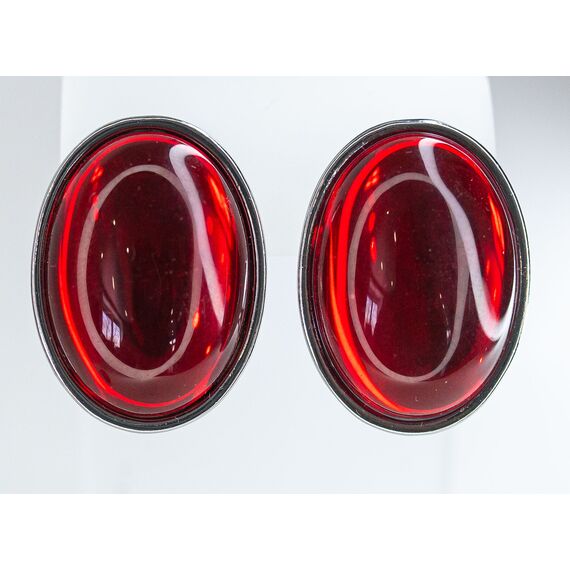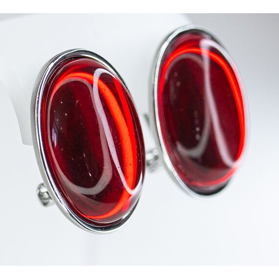 Серьги из гипоаллергенного ювелирного сплава серого цвета. Вставка- улексит красного цвета. Высота серег-2,5см, ширина-2,0см. Итальянский замок (швенза-1,2см и застежка- клипса).