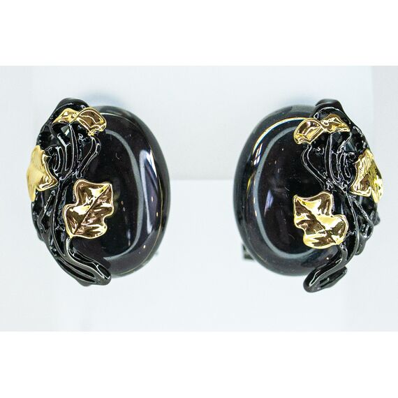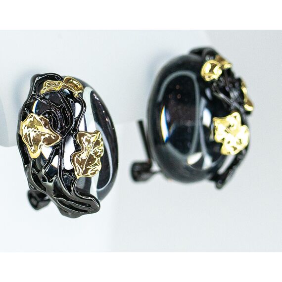 Серьги из гипоаллергенного ювелирного сплава черного и желтого цвета. Вставка- улексит (кошачий глаз) , цвет- серый. Высота серег-2,0см, ширина-1,7см. Итальянский замок (швенза-1,2см и застежка- клипса).