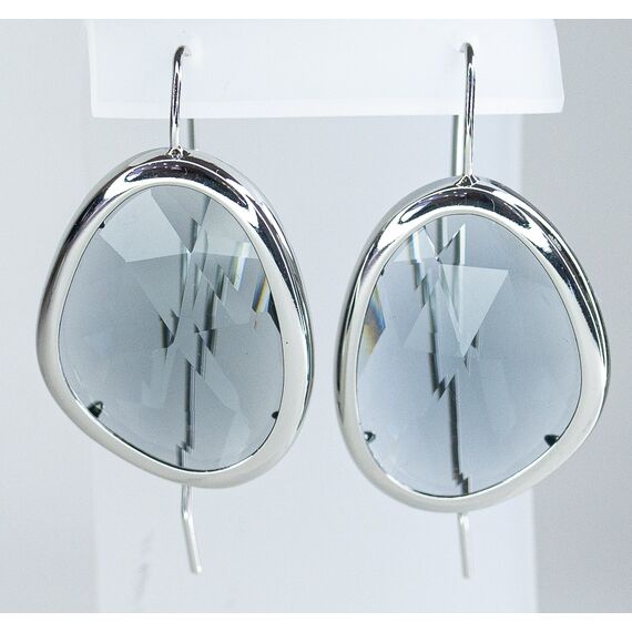 Серьги из гипоаллергенного ювелирного сплава серого цвета. Вставка- ювелирное стекло серого цвета. Высота серег-4,0см., ширина-2,0см. Застежка- французская.