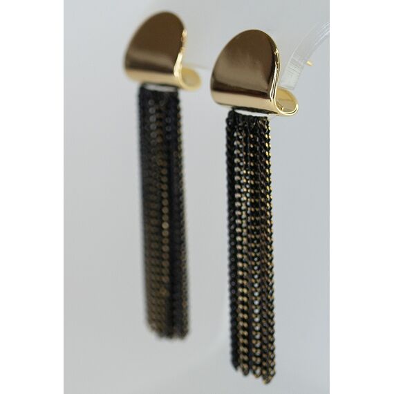 Серьги из гипоаллергенного ювелирного сплава желтого и черного цвета. Без вставок. Высота серег-5,0см, ширина-1,5см. Застежка- пусет.
