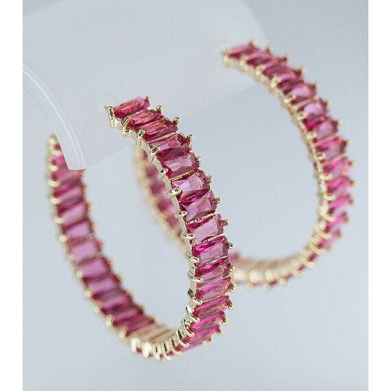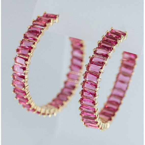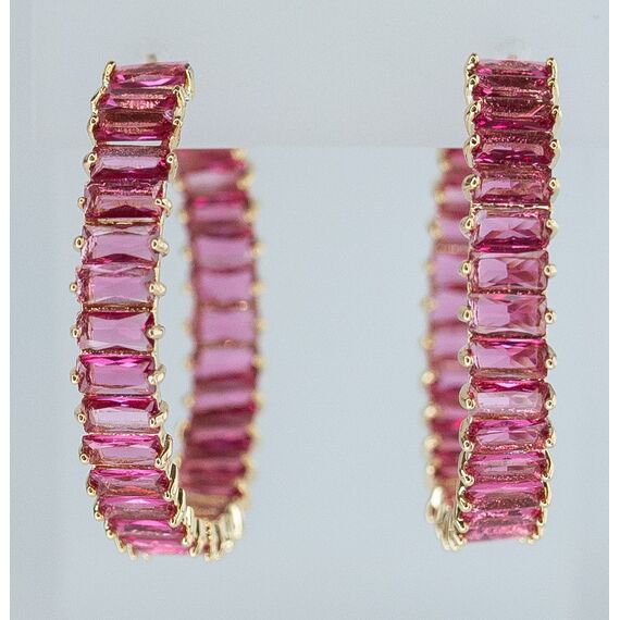 Серьги из гипоаллергенного ювелирного сплава желтого цвета. Вставка- ювелирное стекло розового цвета. Высота серег-3,0см, ширина-0,5см. Застежка- пусет.
