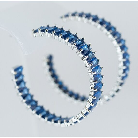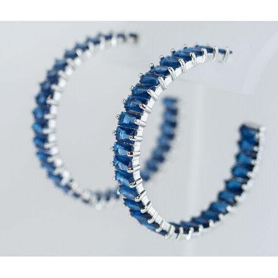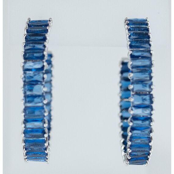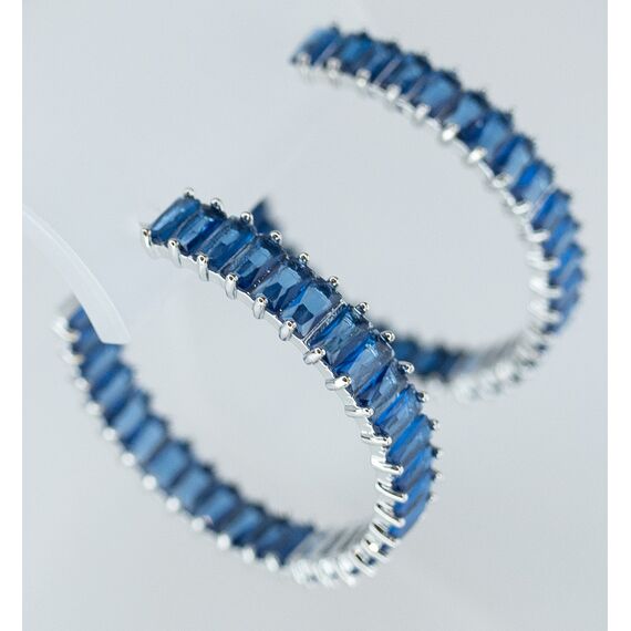 Серьги из гипоаллергенного ювелирного сплава серого цвета. Вставка- ювелирное стекло синего цвета. Высота серег-3,0см, ширина-0,5см. Застежка- пусет.
