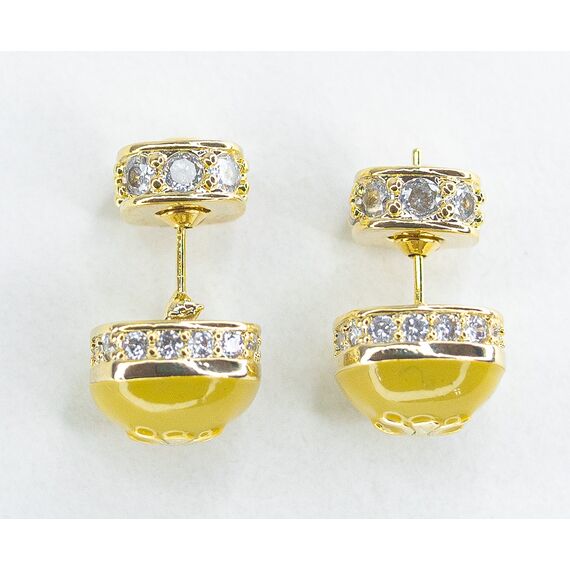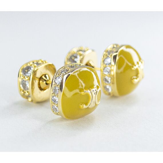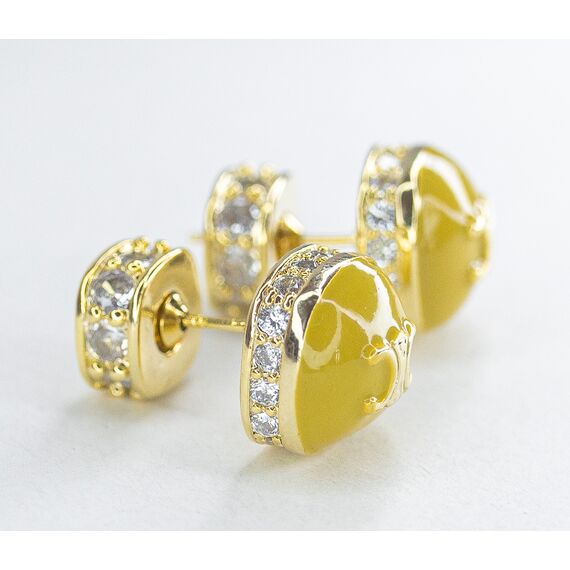 Серьги из гипоаллергенного ювелирного сплава желтого цвета. Вставка- циркон белого цвета. Покрытие эмалью желтого цвета. Высота серег-1,0см, ширина-1,0см. Застежка- пусет.