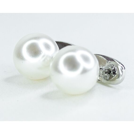 Серьги из гипоаллергенного ювелирного сплава серого цвета. Вставка- жемчуг белого цвета. Высота серег-1,0см, ширина-1,0см. Застежка- пусет.