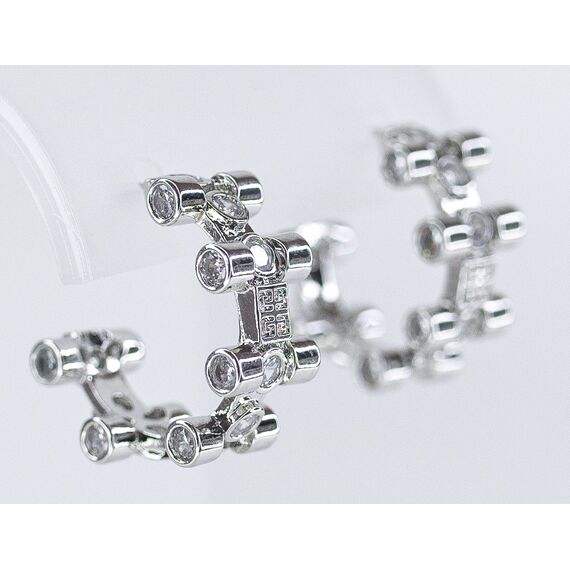 Серьги из гипоаллергенного ювелирного сплава серого цвета. Вставка- циркон белого цвета. Высота серег-2,0см, ширина-0,7см. Застежка- пусет.
