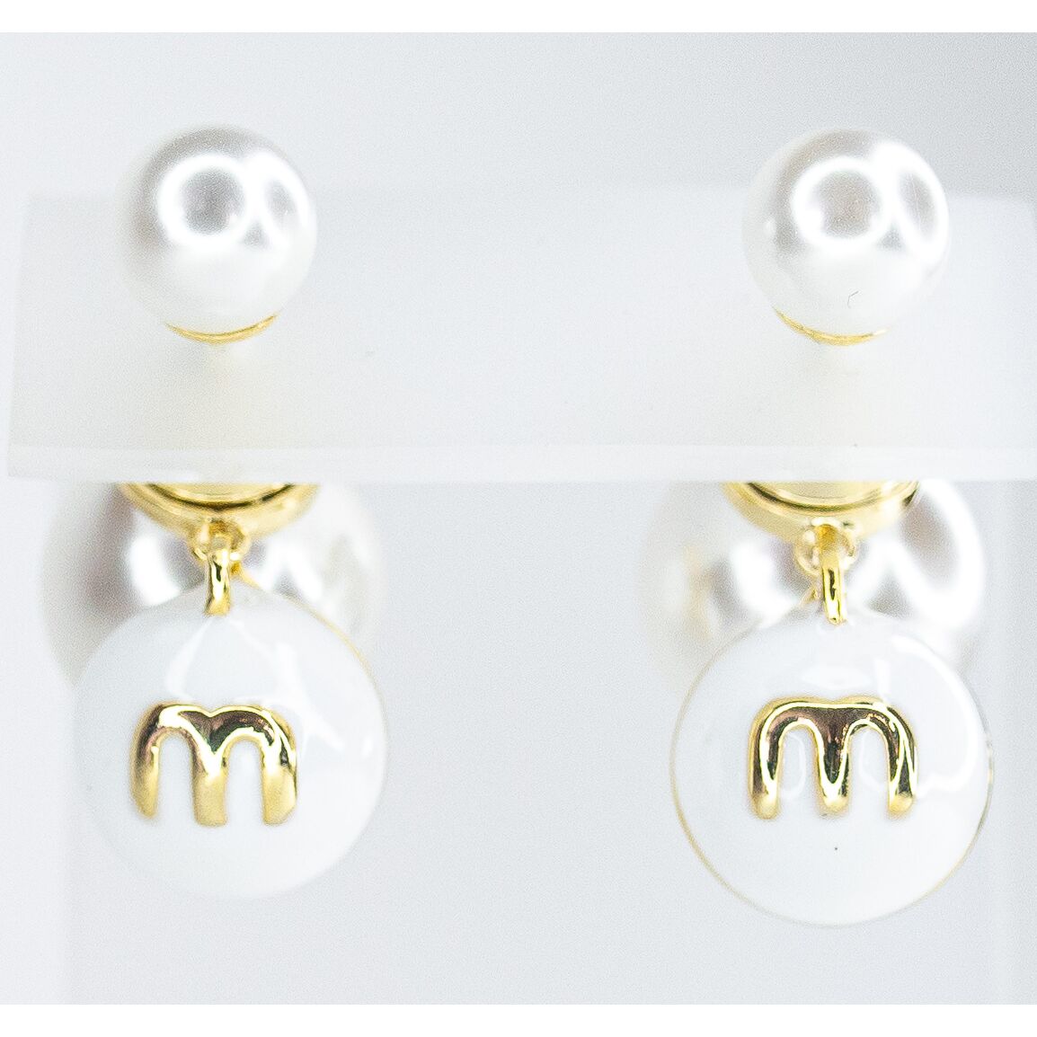 Серьги из гипоаллергенного ювелирного сплава желтого цвета. Вставка- жемчуг белого цвета. Покрытие эмалью белого цвета. Высота серег-2,0см, ширина-1,0см. Застежка- пусет.