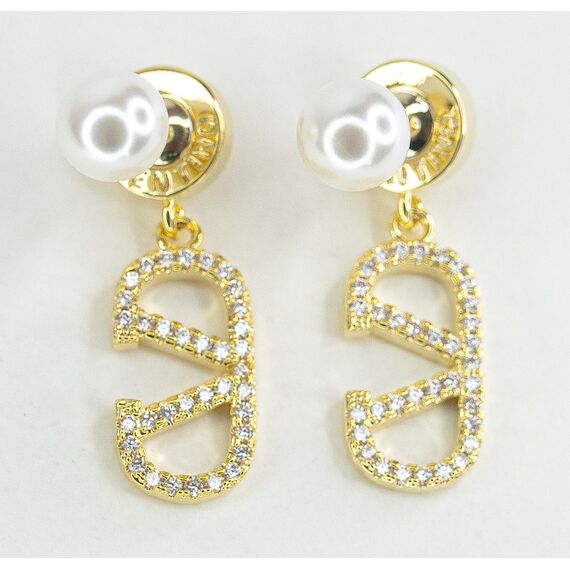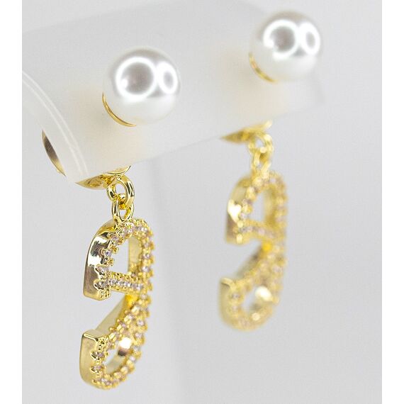 Серьги из гипоаллергенного ювелирного сплава желтого цвета. Вставка- циркон и жемчуг белого цвета. Высота серег-3,0см, ширина-1,0см. Застежка- пусет.