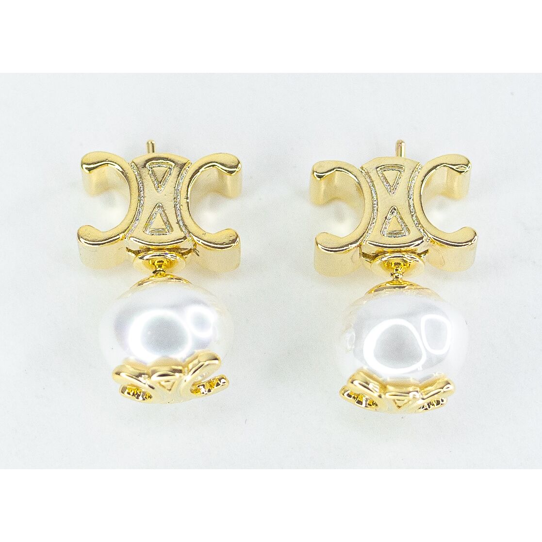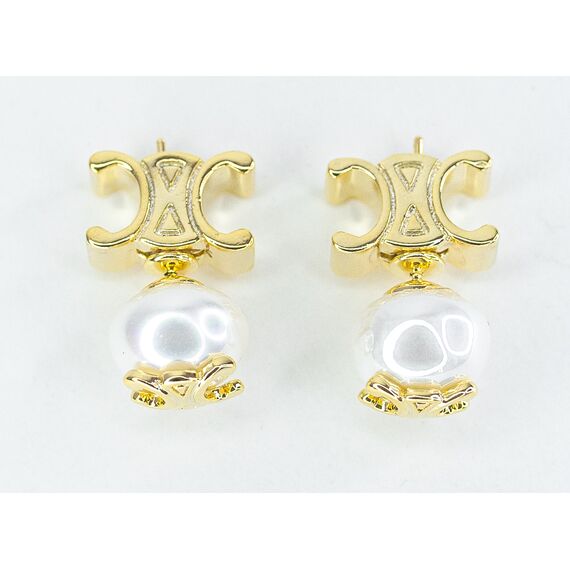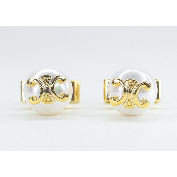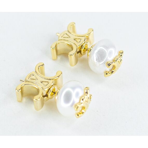 Серьги из гипоаллергенного ювелирного сплава желтого цвета. Вставка- жемчуг белого цвета. Высота серег-2,0см, ширина-1,0см. Застежка- пусет.