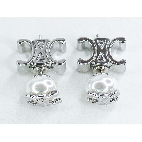Серьги из гипоаллергенного ювелирного сплава серого цвета. Вставка- жемчуг белого цвета. Высота серег-2,0см, ширина-1,0см. Застежка- пусет.