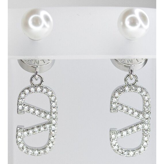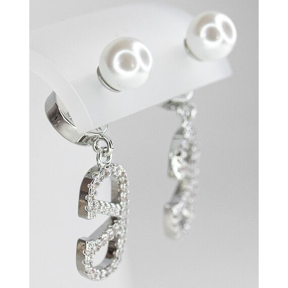 Серьги из гипоаллергенного ювелирного сплава желтого цвета. Вставка- циркон и жемчуг белого цвета. Высота серег-3,0см, ширина-1,0см. Застежка- пусет.