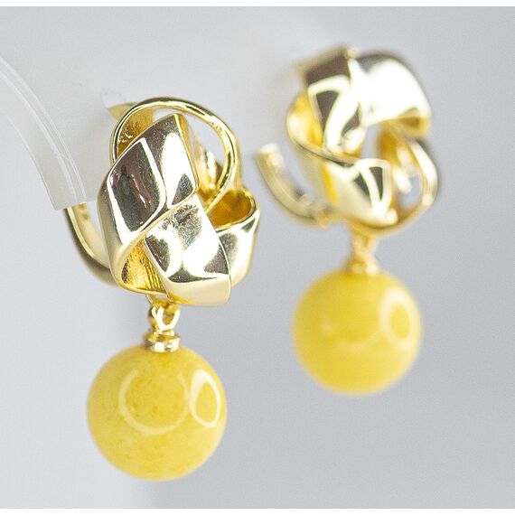 Серьги из гипоаллергенной бронзы с позолотой. Вставка- нат.янтарь белого цвета ( размер камня-1,0/1,0см). Высота серег-3,0см, ширина-1,5см. Застежка- английская (швенза-1,0см).