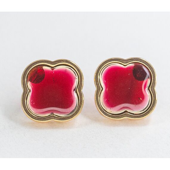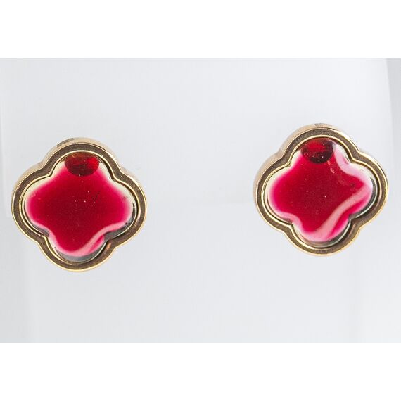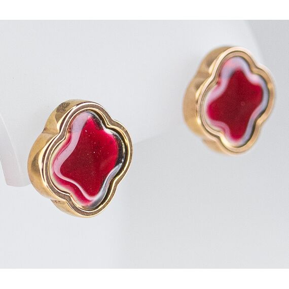 Серьги из гипоаллергенной бронзы с позолотой. Вставка- нат.янтарь красного цвета ( размер камня-1,0/1,0см). Высота серег-1,0см, ширина-1,0см. Застежка-пусет.