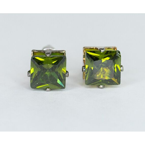 Серьги женские из гипоаллергенного ювелирного сплава серого цвета. Вставка- ювелирное стекло зеленого цвета. Высота серег--1,0см, ширина- 1,0см. Застежка- пусет.