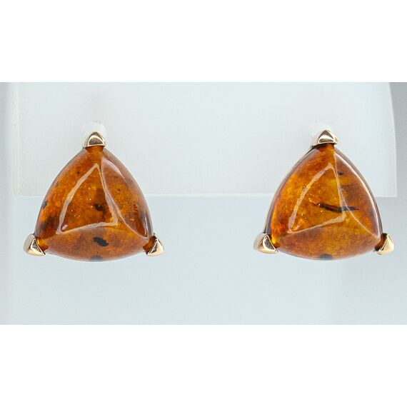 Серьги из гипоаллергенной бронзы с позолотой. Вставка- нат.янтарь коричневого цвета. Высота серег-1,0см, ширина-1,0см. Застежка- английская (швенза-1,0см).