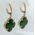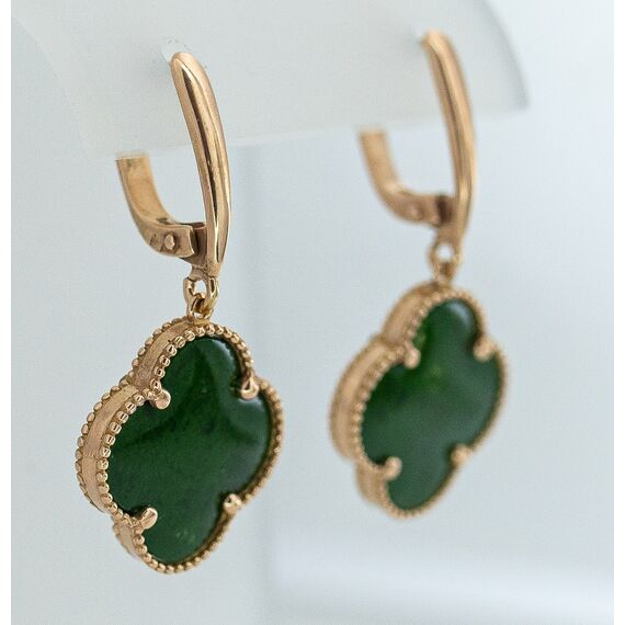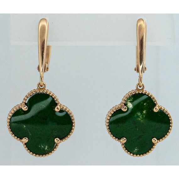 Серьги из гипоаллергенной бронзы с позолотой. Вставка- нат.янтарь зеленого цвета. Высота серег-3,0см, ширина-1,5см. Застежка- английская (швенза-1,0см).
