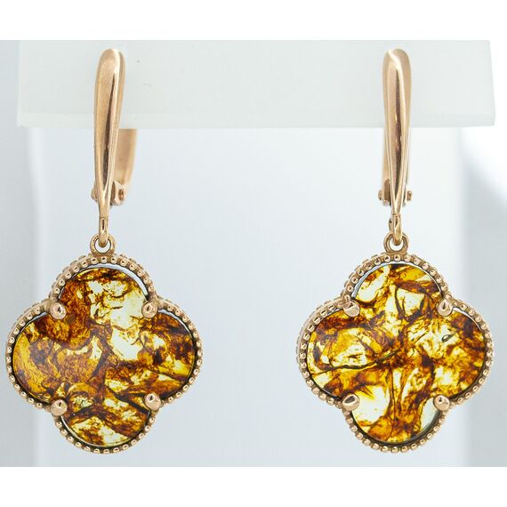 Серьги из гипоаллергенной бронзы с позолотой. Вставка- нат.янтарь коричневого цвета. Высота серег-3,0см, ширина-1,5см. Застежка- английская (швенза-1,0см).