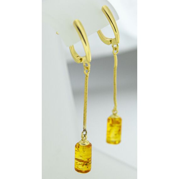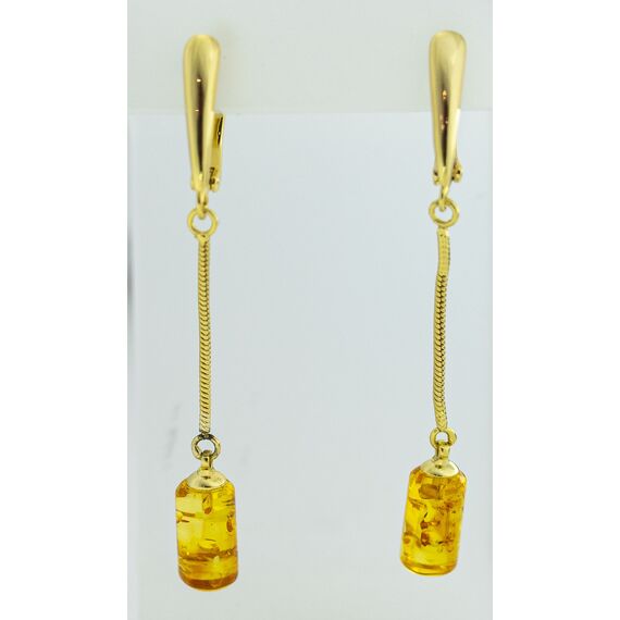 Серьги из гипоаллергенной бронзы с позолотой. Вставка- нат.янтарь желтого цвета на цепочке. Высота серег-6,0см, ширина-0,6см. Застежка- английская (швенза-1,0см).