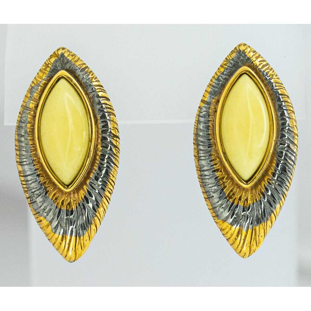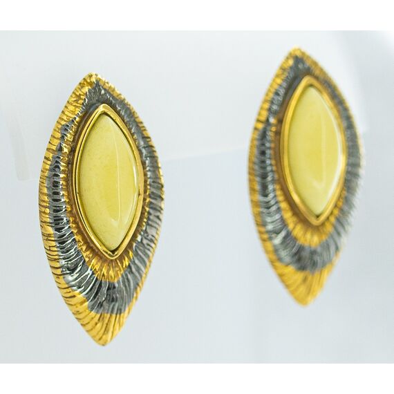 Серьги из гипоаллергенной бронзы с покрытием родием и позолотой. Вставка- нат.янтарь желтого цвета. Высота серег-3,0см, ширина-1,6см. Застежка- английская (швенза-1,0см).