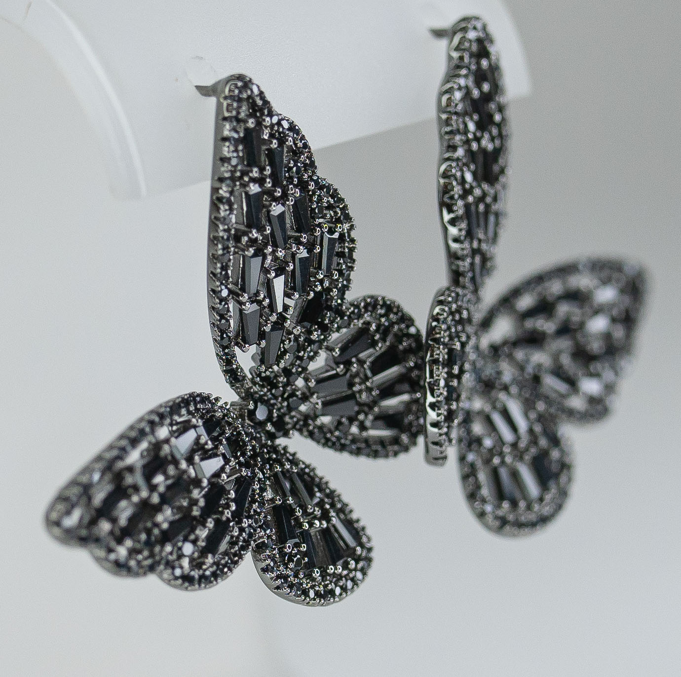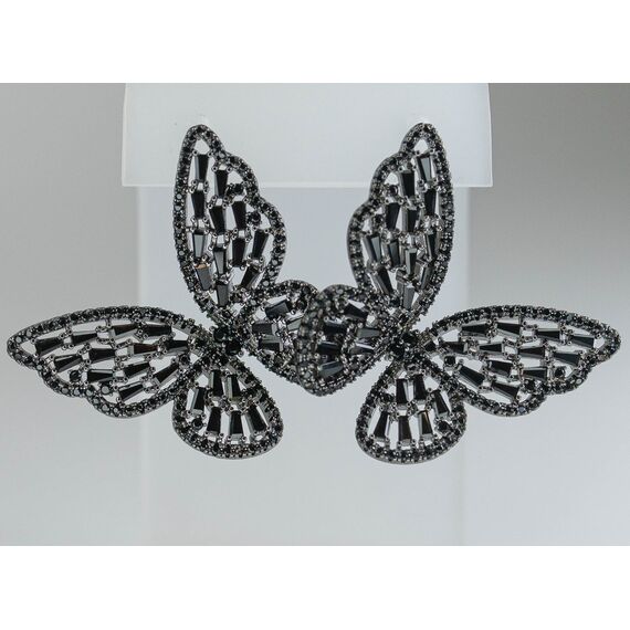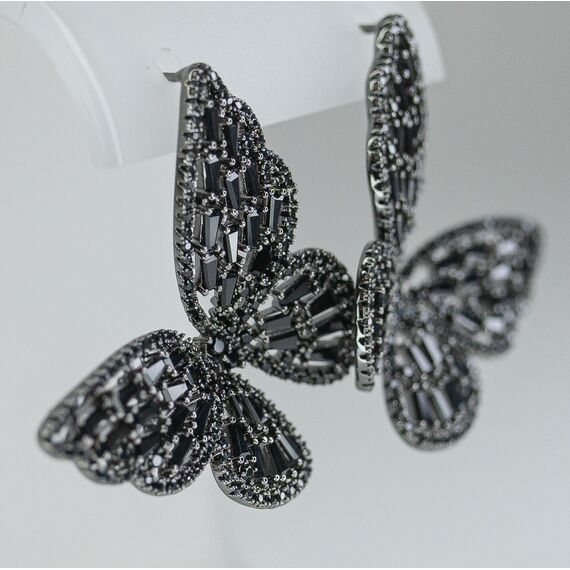 Серьги из гипоаллергенного ювелирного сплава черного цвета. Вставка- цирконы черного цвета. Высота серег-3,0см, ширина-3,0см. Застежка- пусет.