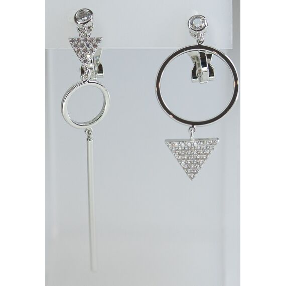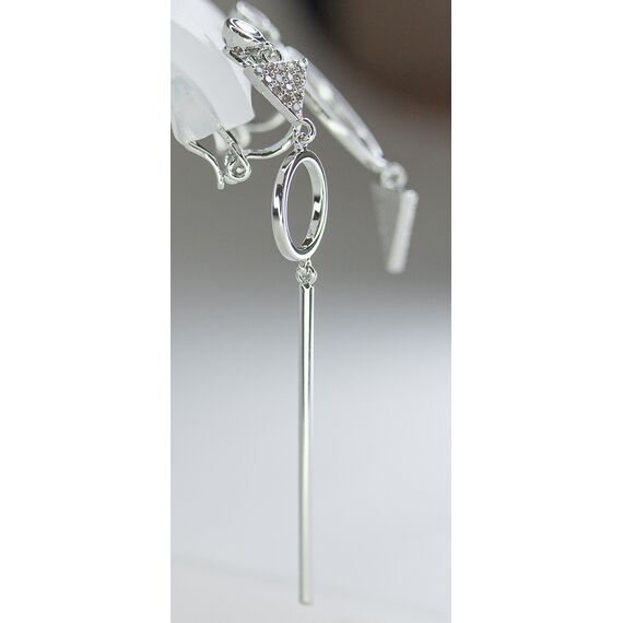 Серьги из гипоаллергенного ювелирного сплава серого цвета. Вставка- ювелирное стекло белого цвета. Высота серег-5,0см, ширина-1,5см. Застежка- пусет.