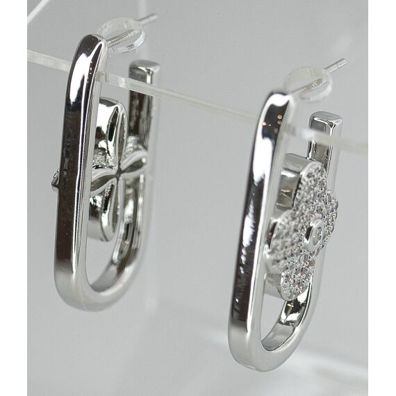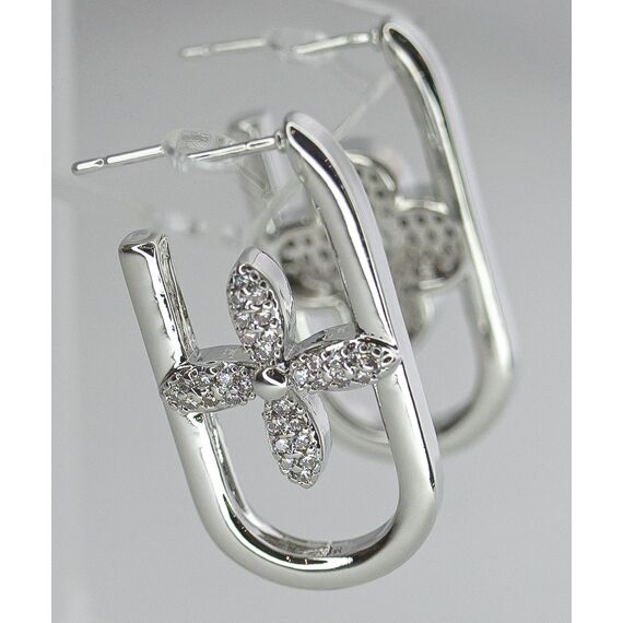 Серьги женские из гипоаллергенного ювелирного сплава серого цвета. Вставка- ювелирное стекло белого цвета. Высота серег-3,0см. ширина-1,5см. Застежка-пусет.