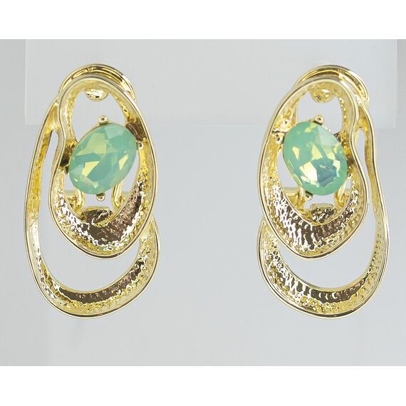 Серьги женские из гипоаллергенного ювелирного сплава желтого цвета. Вставка- кварц зеленого цвета. Высота серег -3,0см, ширина -2,0см. Итальянский замок( штифт-1,2см и клипса).