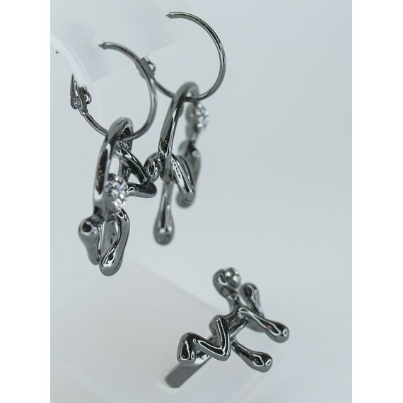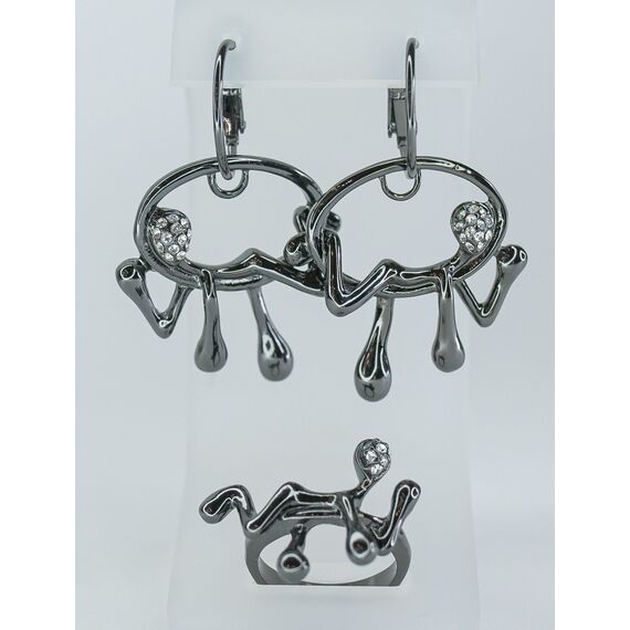 Серьги женские из гипоаллергенного ювелирного сплава черного цвета. Вставка- ювелирное стекло, цвет- белый. Высота серег-4,0см, ширина-2,5см. Замок- английский (штифт-1,0см).