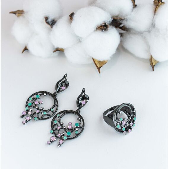 Серьги из гипоаллергенного ювелирного сплава черного цвета. Без вставок. Высота серёг-6см, ширина-3см. Итальянский замок (штифт-1,2см и застежка-клипса).