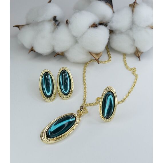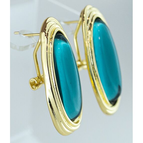 Серьги женские из гипоаллергенного ювелирного сплава желтого цвета. Вставка- улексит, цвет- синий. Высота серег-4,0см, ширина-2,5см. Итальянский замок ( штифт-1,2см и застежка -клипса).