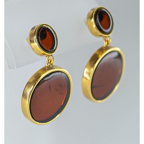 Серьги из гипоаллергенной бронзы с позолотой. Вставка- нат.янтарь красного цвета ( размер камня-2,0/1-2,0см). Высота серег-3,0см, ширина-2,0см. Застежка- пусет.
