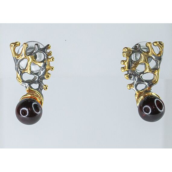 Серьги из гипоаллергенной бронзы с позолотой и родием. Вставка- нат.янтарь коньячного цвета ( размер камня-0,5/0,5см). Высота серег-2,0см, ширина-1,0см. Застежка- пусет.