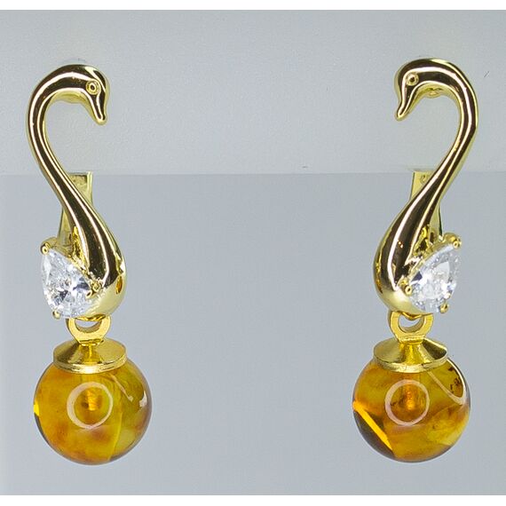 Серьги из гипоаллергенного ювелирного сплава желтого цвета. Вставка-натуральный янтарь, цвет- желтый и фианиты белого цвета. Высота серег-3,0см, ширина-1,0см. Застежка- английская (штифт-1,0см).