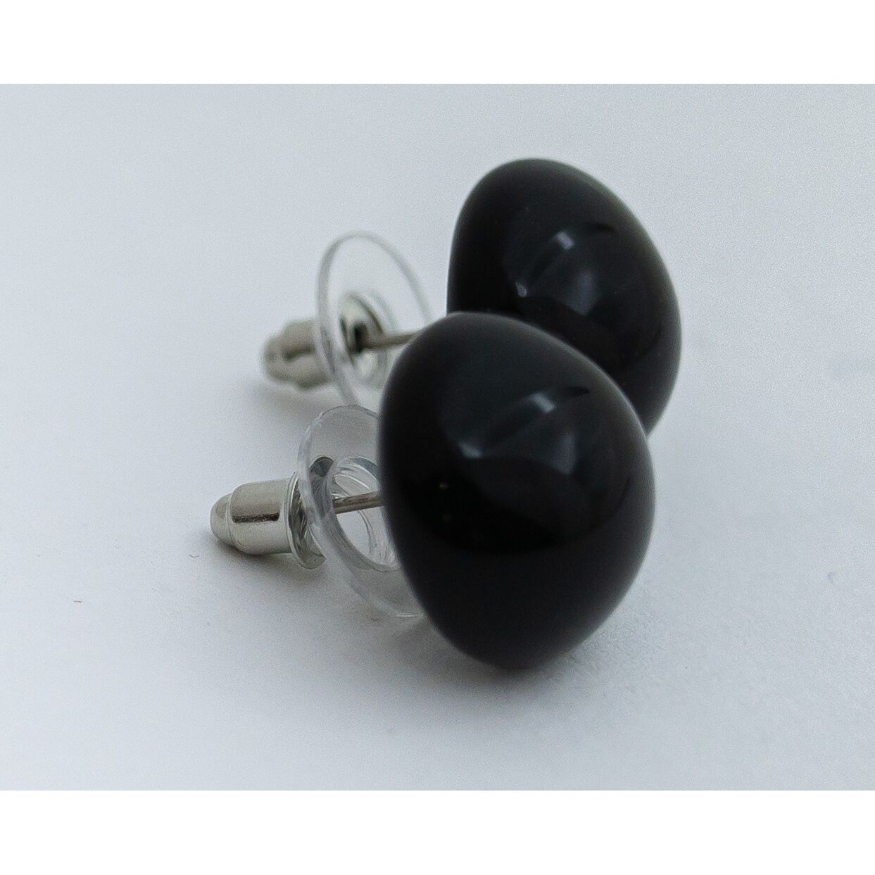 Серьги женские из гипоаллергенного ювелирного сплава серого цвета и муранского стекла, цвет- черный. Высота серег-1,5см, ширина-1,5см. Застежка- пусет.