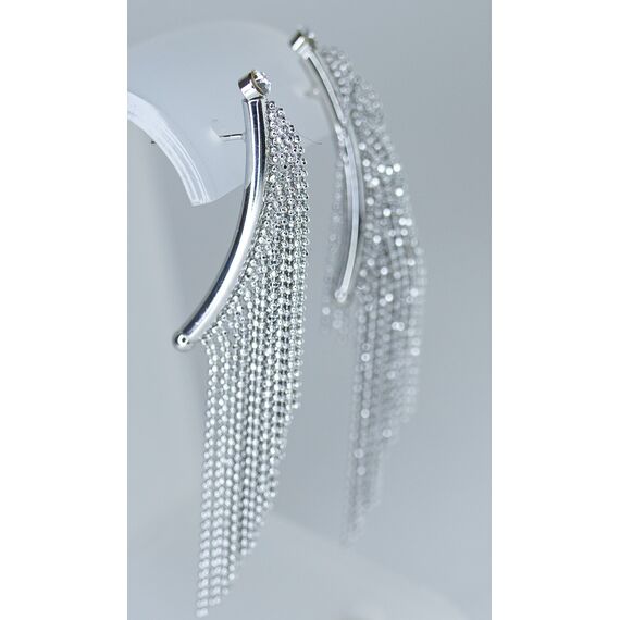 Серьги женские из гипоаллергенного ювелирного сплава серого цвета. Вставка- циркон белого цвета. Высота серег- 6,0см, ширина-4,0см. Застежка- пусет.