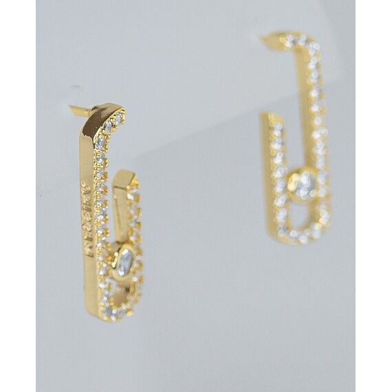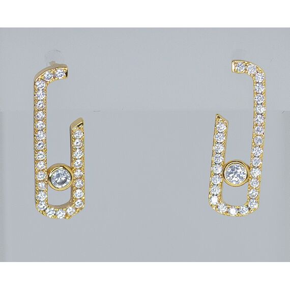 Серьги женские из гипоаллергенного ювелирного сплава желтого цвета. Вставка- циркон, цвет- мистик. Высота серег-2,0см, ширина -1,0см. Застежка- пусет.
