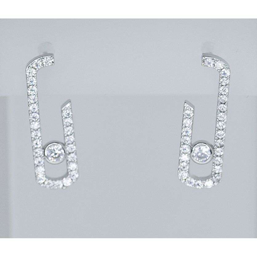 Серьги женские из гипоаллергенного ювелирного сплава серого цвета. Вставка- циркон, цвет- белый. Высота серег-2,0см, ширина -1,0см. Застежка- пусет.