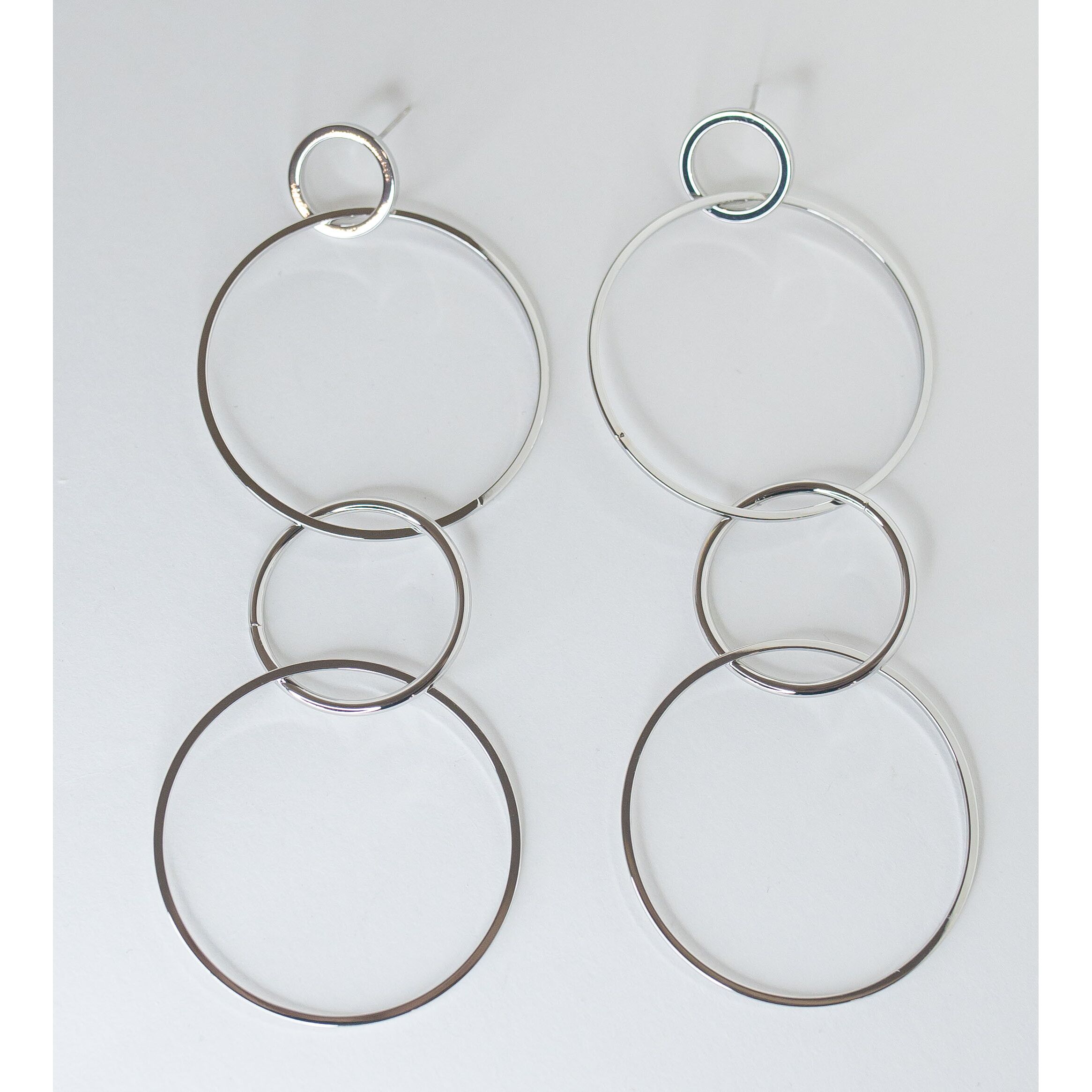 Серьги женские геометрической формы из гипоаллергенного ювелирного сплава серого цвета. Без вставок. Высота серег-12,0см, ширина-3,0см. Застежка- пусет.