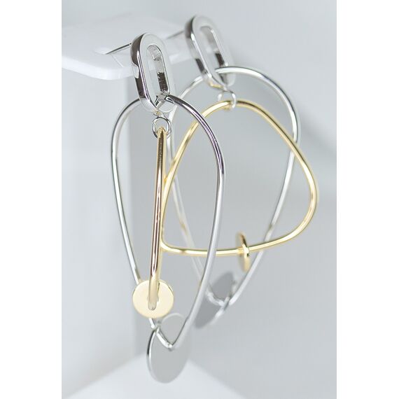 Серьги женские геометрической формы из гипоаллергенного ювелирного сплава желтого и серого цвета. Без вставок. Высота серег-7,0см, ширина-3,0см. Застежка- пусет.