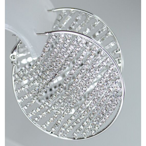 Серьги женские из гипоаллергенного ювелирного сплава серого цвета. Вставка- цирконы белого цвета. Высота серег-4,0см, ширина-4,0см. Застежка- итальянская (штифт-1,2см).