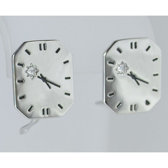 Серьги женские прямоугольной формы из гипоаллергенного ювелирного сплава серого цвета. Вставка- циркон белого цвета. Высота серег-2,0см, ширина-1,5см. Застежка- пусет.