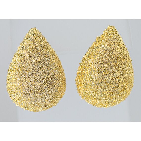 Серьги женские из гипоаллергенного ювелирного сплава желтого цвета с пескоструйным покрытием. Без вставок. Высота серег-3,0см, ширина-1,5см. Застежка- пусет.