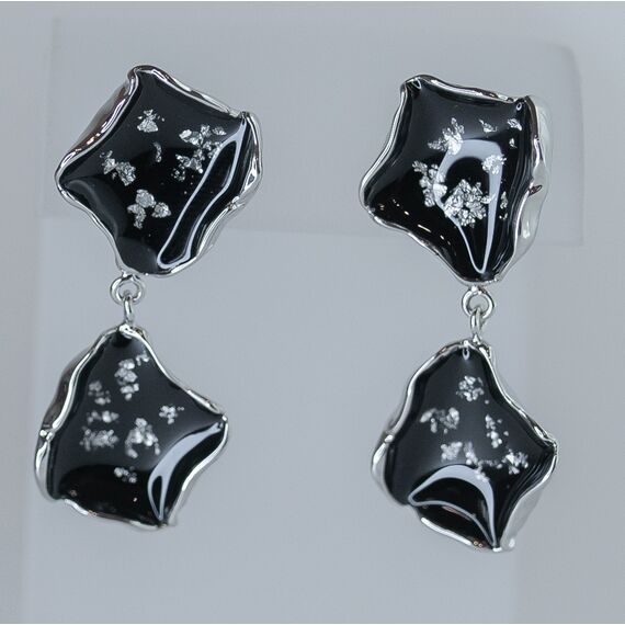 Серьги женские из гипоаллергенного ювелирного сплава серого цвета. Покрытие эмалью черного цвета. Высота серег-3,0см, ширина-1,5см. Застежка- пусет.